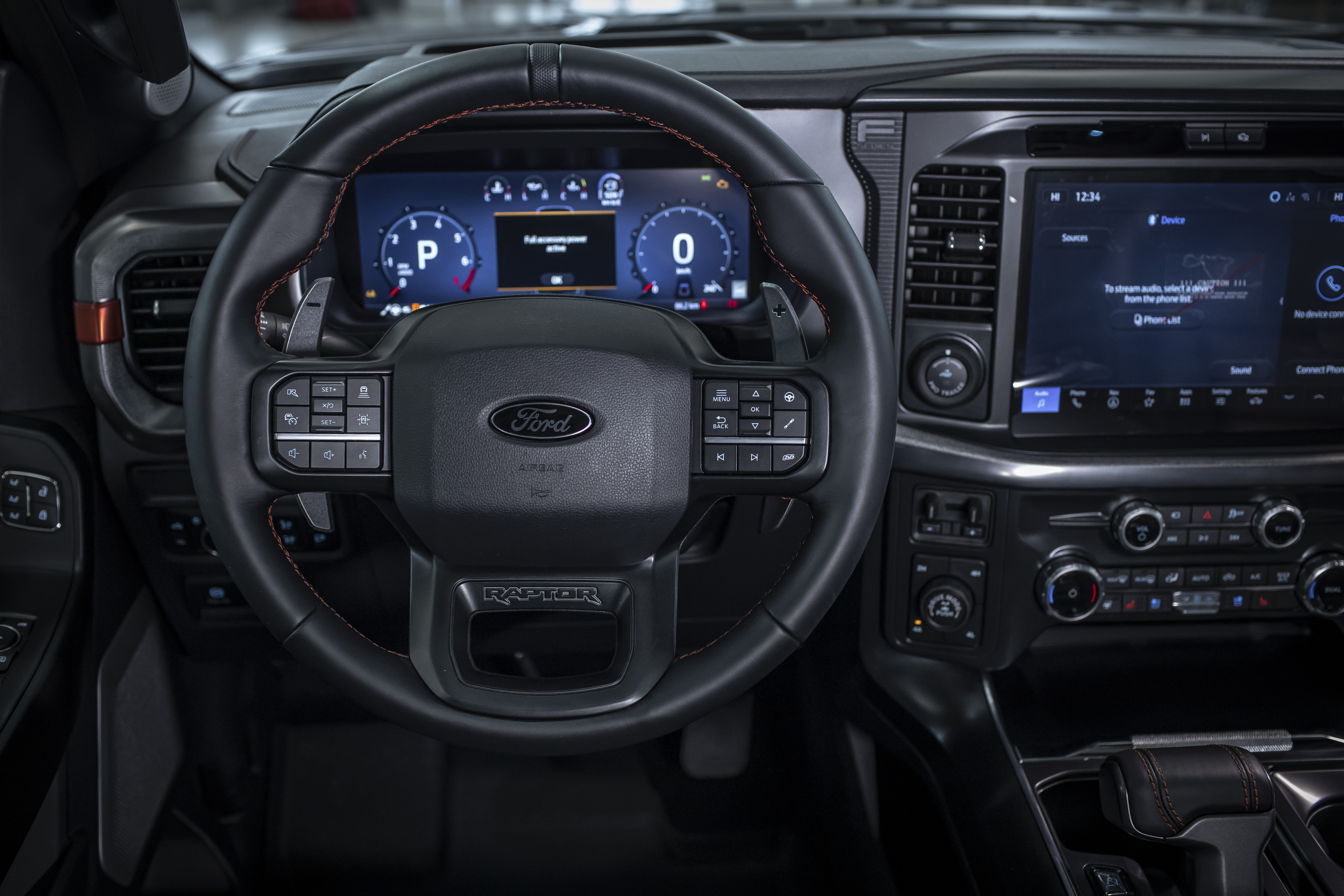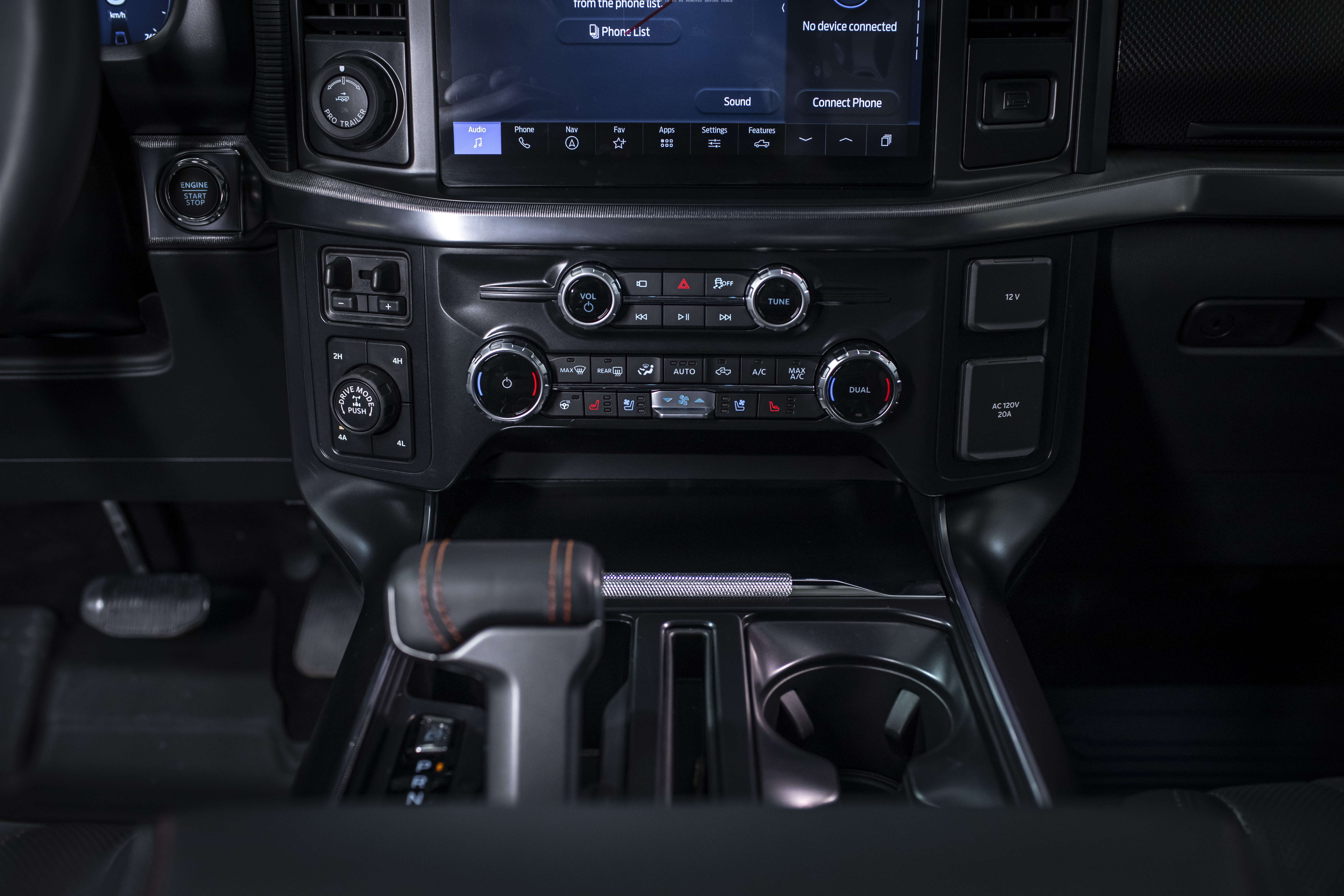 - Режимы вождения: Normal (нормальный режим), Sport (спортивный режим), Tow/Haul (режим буксировочной тяги), Slippery (режим скользкой дороги), Off-Road (внедорожный режим), Baja (режим пустынной местности), Rock Crawl (режим каменистой дороги)