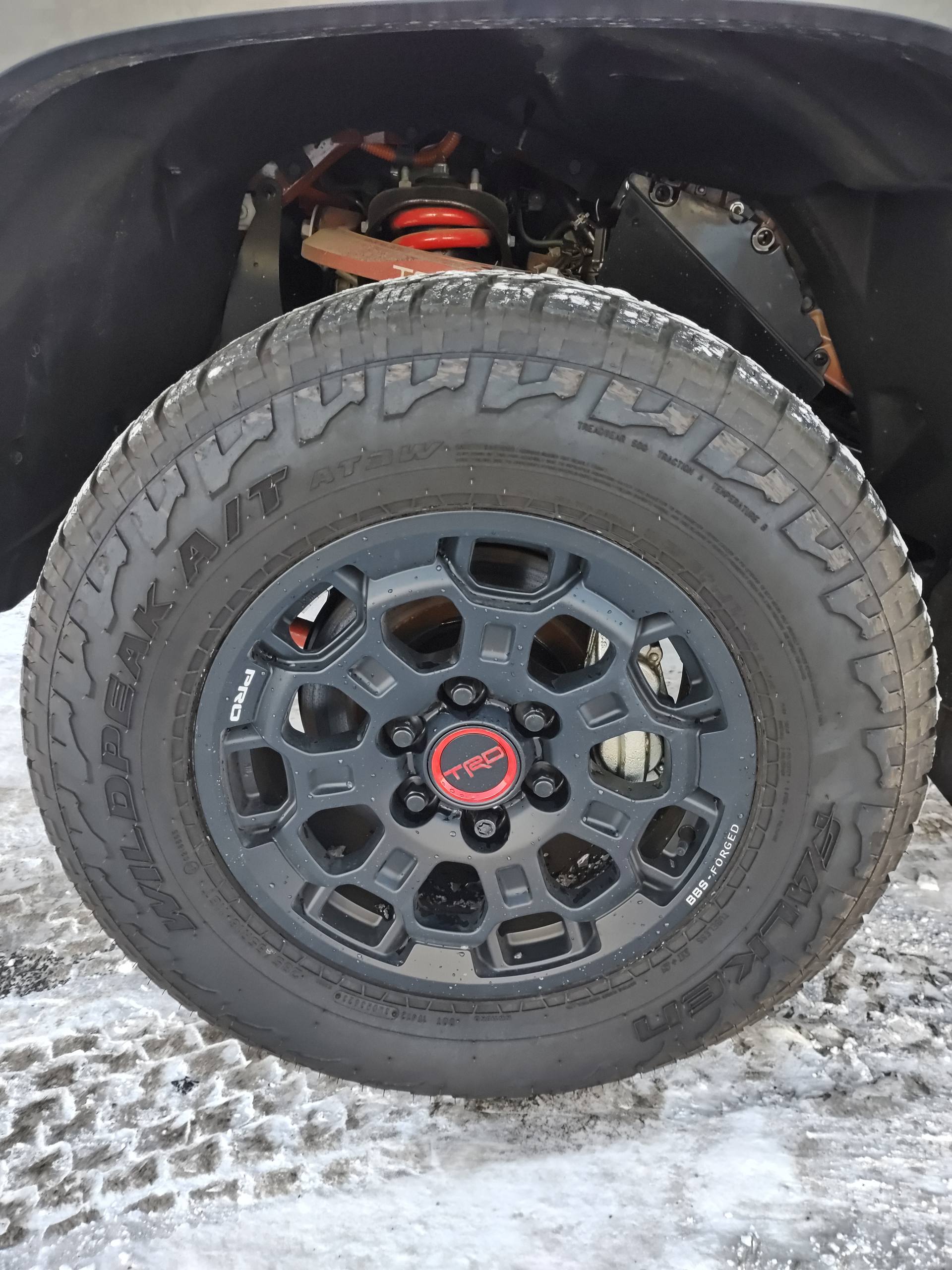 - Матово-чёрные колёса из кованого алюминия из BBS TRD Pro с центральными крышками TRD